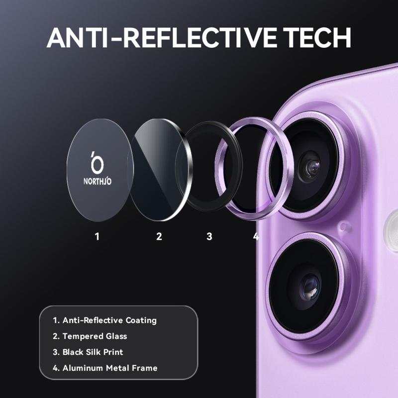 Northjo Protecteur d'objectif de caméra en verre trempé pour iPhone 17