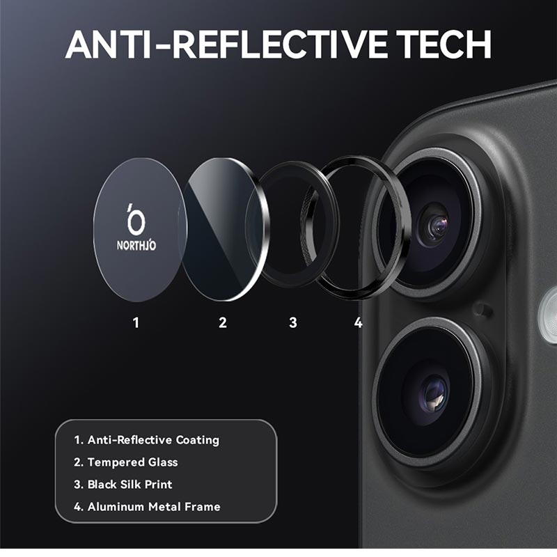 Northjo Protecteur d'objectif de caméra en verre trempé pour iPhone 17