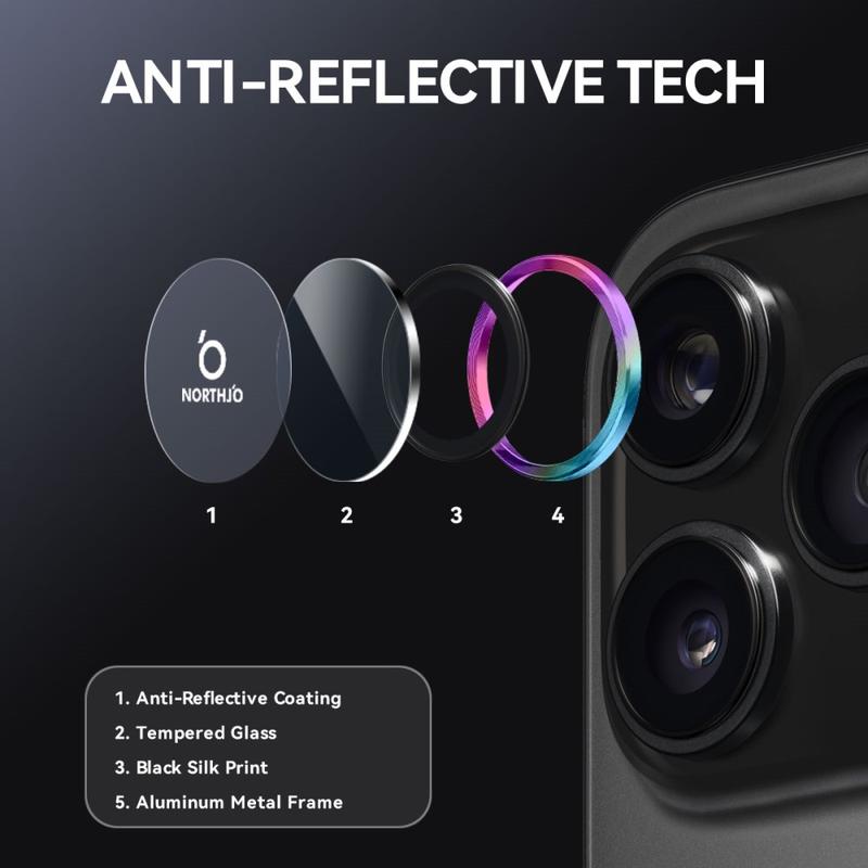 Northjo Protecteur d'objectif de caméra en verre trempé pour iPhone 17 Pro, iPhone 17 Pro Max