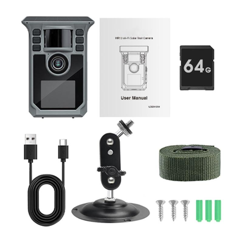 KJK HR-HC13 Hrivcam Caméra de randonnée solaire étanche avec carte mémoire de 64 Go