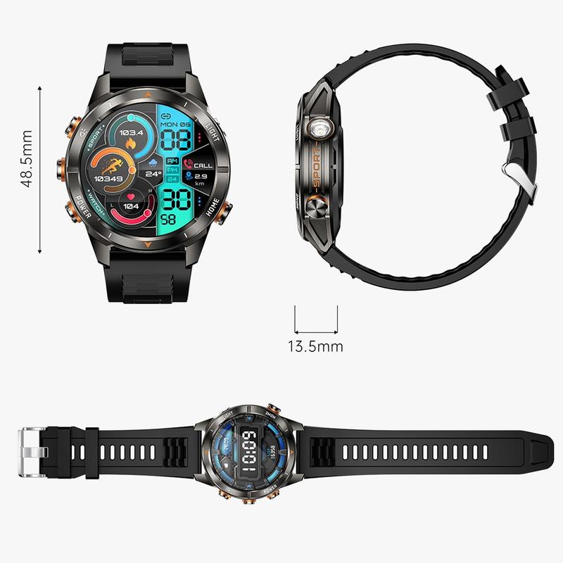 KT80 Sports Smart Watch - Étanche 3ATM, Appel Bluetooth, 1.46" Écran tactile HD, Lampe de poche intégrée