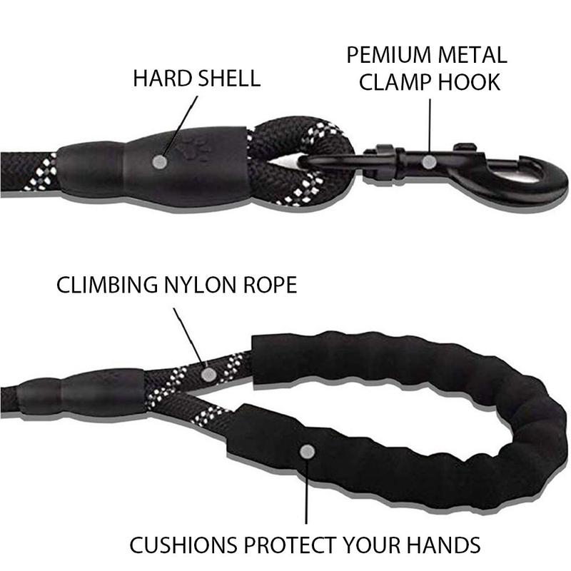 Laisse pour chien avec poignée rembourrée en EVA et fils réfléchissants - 1.5m