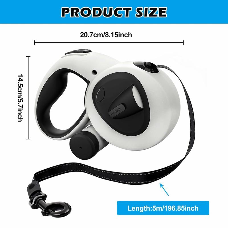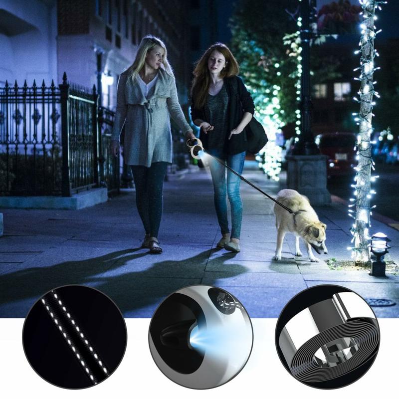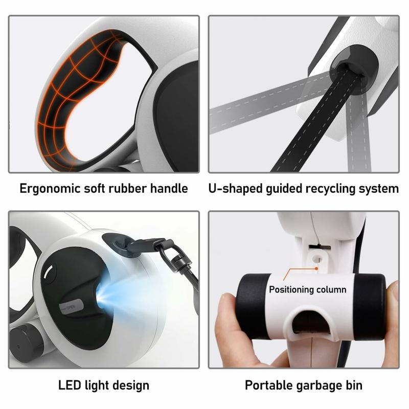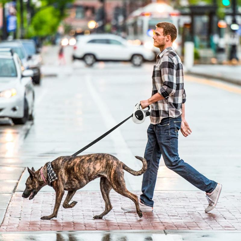 Vous bénéficiez de la commodité d'une laisse rétractable, de la sécurité d'une torche intégrée et d'une bande réfléchissante, ainsi que de la praticité d'un porte-sac à déchets, le tout dans une unité robuste et élégante. Moins d'accessoires à jongler signifie des promenades plus calmes et plus agréables pour vous et votre chien.