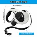 Donnez à chaque promenade plus de liberté, de sécurité et de style. Cette laisse rétractable de 5mètres est équipée d'une lampe de poche LED rechargeable par USB, de sangles réfléchissantes haute visibilité et d'un système de freinage silencieux à un bouton qui permet de contrôler même les plus gros chiens (jusqu'à 50kg). Une poignée ergonomique antidérapante vous permet de rester à l'aise lors de vos longues promenades, tandis que le distributeur de sacs à déchets intégré vous permet d'être toujours prêt.
