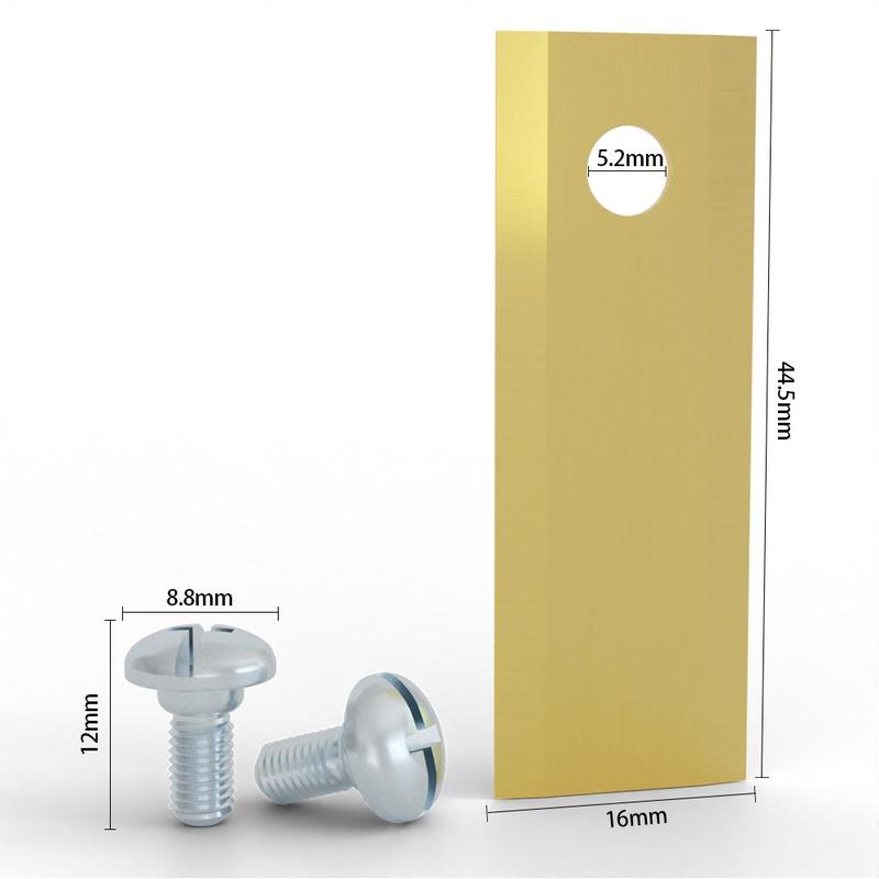 - Dimensions optimales (44,5 x 16 mm) : Offre une largeur de coupe cohérente et efficace pour une tonte nette et régulière de l'herbe.