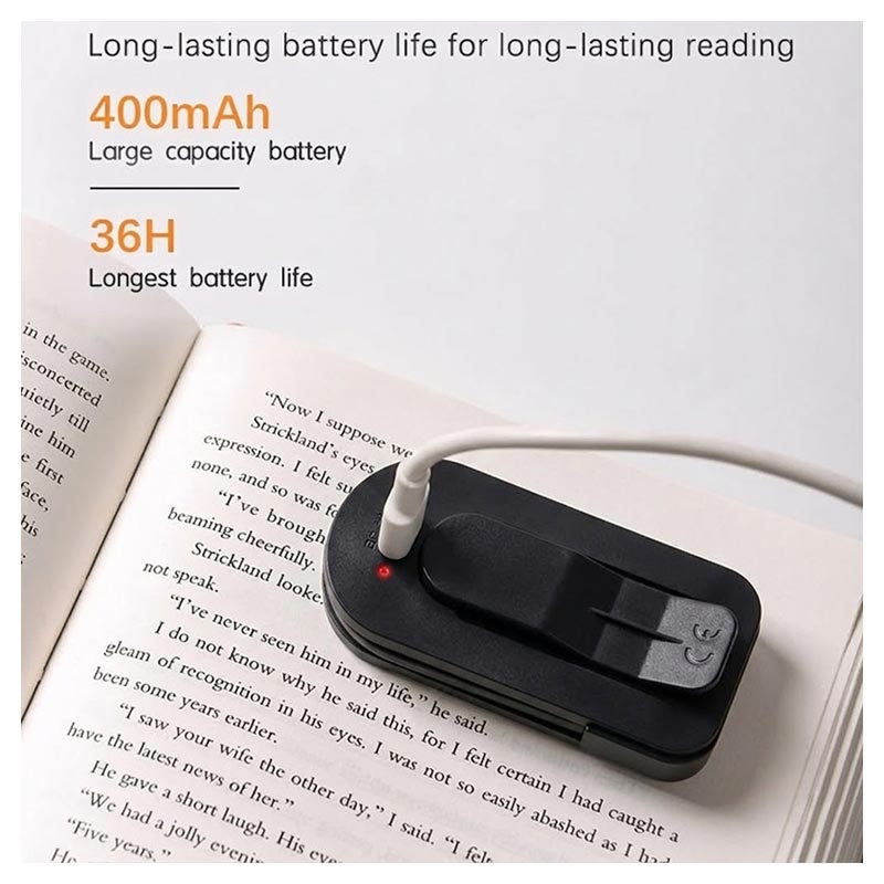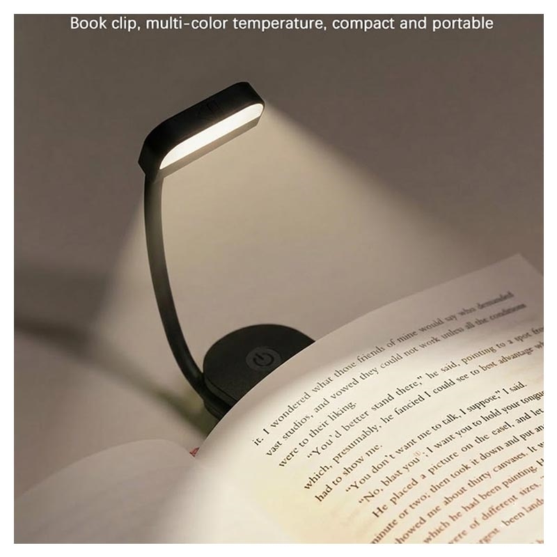 Lampe de lecture LED à pince F26 - Mini-lampe de lecture avec 3 températures de couleur, 3 niveaux de luminosité, rechargeable via USB-C