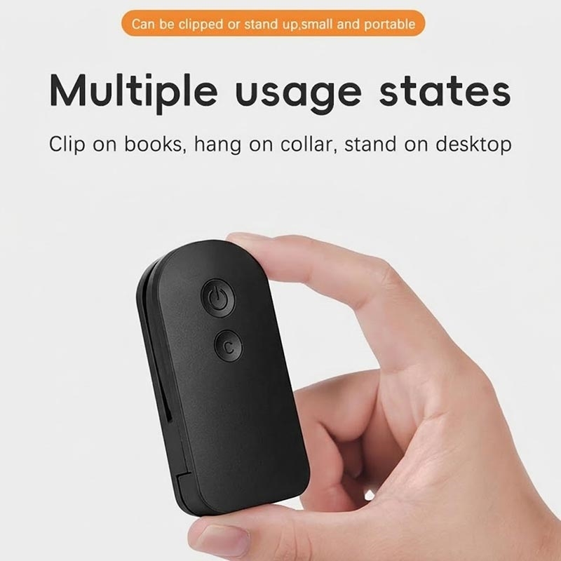 - Conception à pince adaptée aux livres, aux bureaux ou aux vêtements