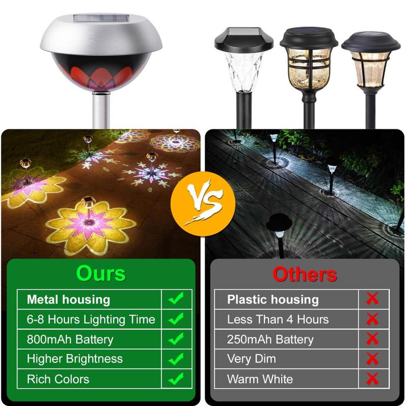 - Les plaques de lampes de projection concentrent la puissance des LED en motifs, de sorte qu'elles semblent jusqu'à 40 % plus lumineuses que les lampes de pelouse diffuses de la même puissance.