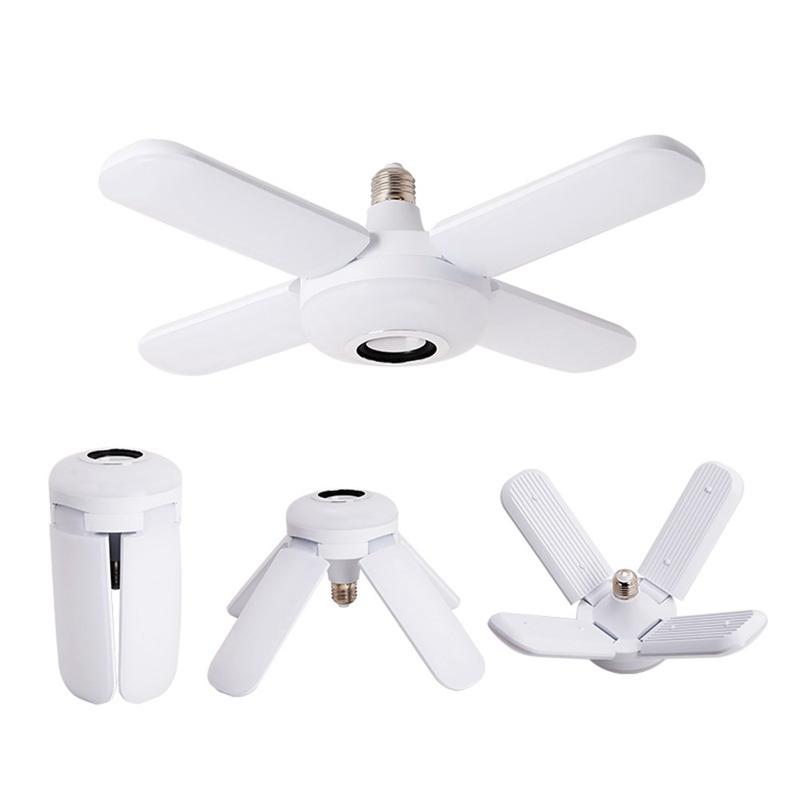 • Plafonnier musical Bluetooth E27 - Lumière changeante de couleur RGB à 4 feuilles pliable avec haut-parleur