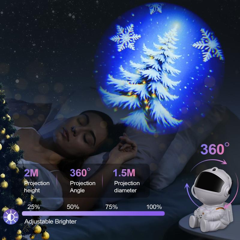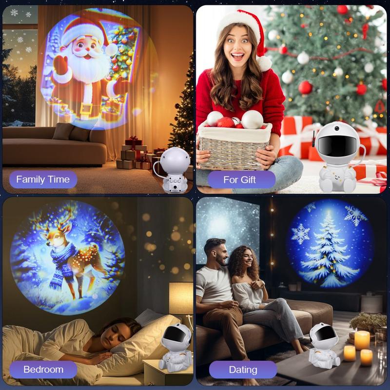 Lampe projecteur de Noël représentant une étoile câlinant un astronaute - Lampe décorative alimentée par USB avec 4 disques de film et 16 motifs