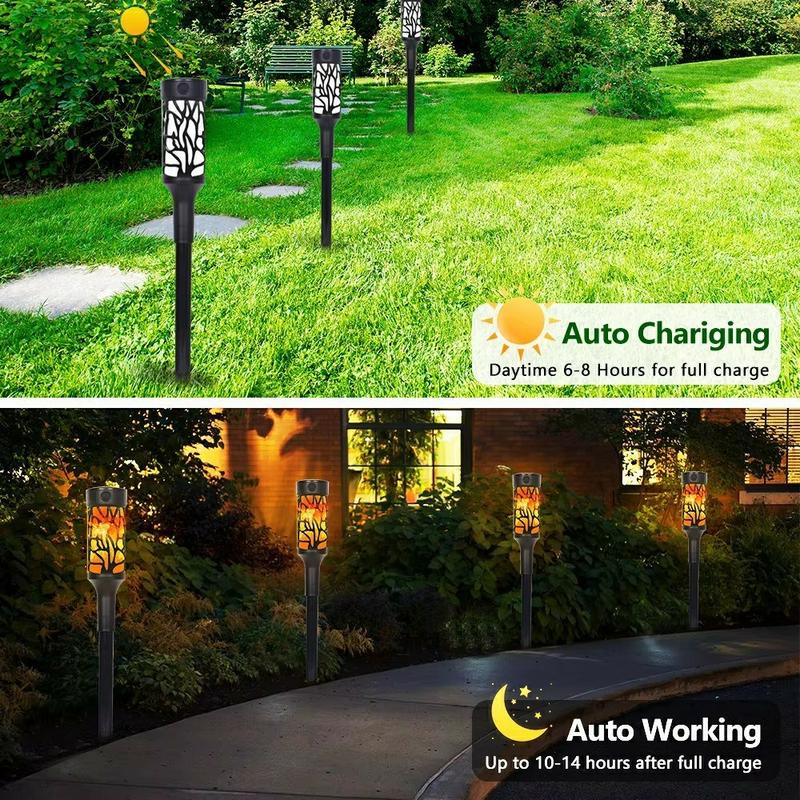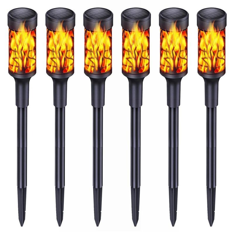 Lampes solaires à effet de flamme pour allées - Lot de 6, torche vacillante de 63 cm avec détecteur de mouvement, lampes de jardin et de pelouse étanches IP65
