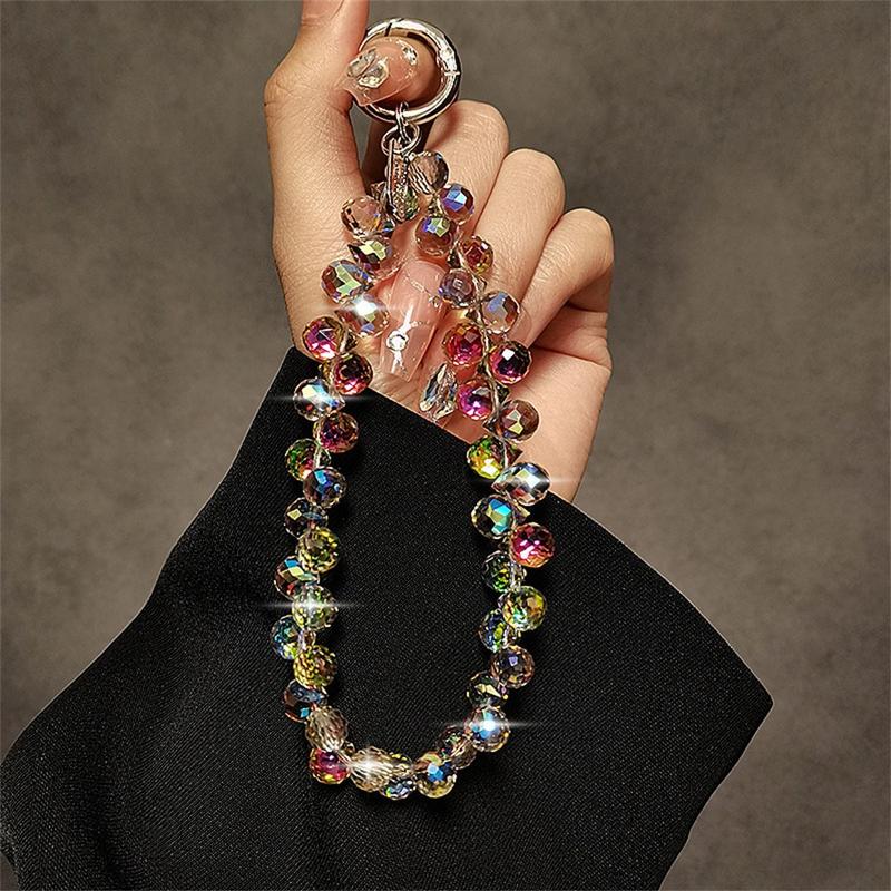 Chaîne pour téléphone portable avec perles en cristal de 14cm - Lanière de poignet et porte-clés avec languette transparente