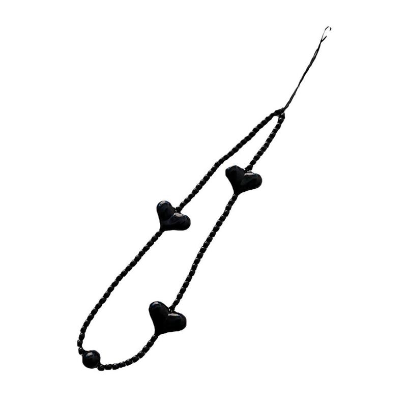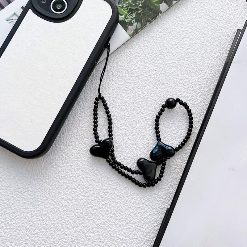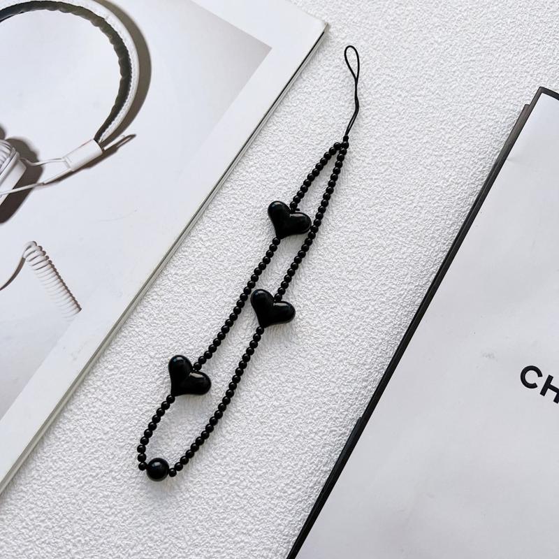 Ajoutez une touche ludique et élégante à votre téléphone grâce à cette dragonne à perles en forme de cœur de 23.5cm. Composée de perles en acrylique noir brillant en forme de cœur, elle sert à la fois d'accessoire décoratif et de dragonne pratique pour un usage quotidien.