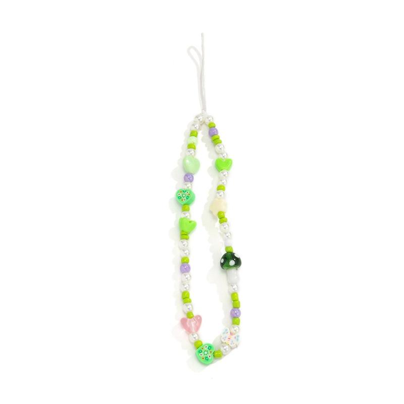Lanière de téléphone avec perles en forme de champignon de 20cm - Accessoire pour téléphone portable avec chaîne en acrylique