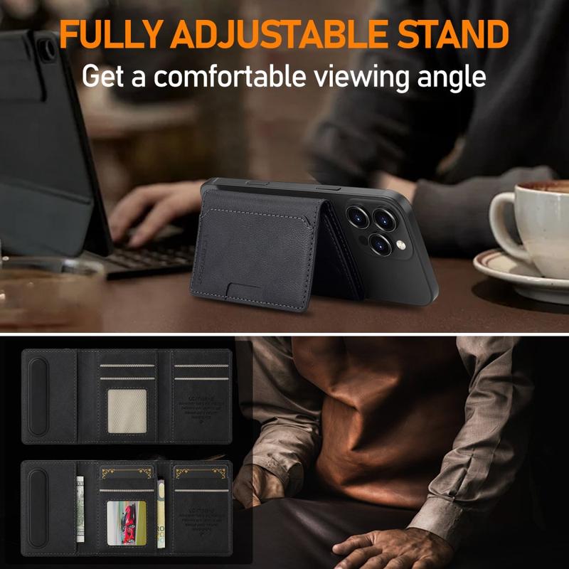 La plupart des pochettes autocollantes sont encombrantes ou perdent leur adhérence au fil du temps. La fixation magnétique de LC.IMEEKE reste sûre, mais le portefeuille se détache lorsque vous souhaitez l'alléger. Le film RFID intégré préserve la confidentialité des finances, et la béquille élimine le besoin d'un anneau ou d'une douille séparée - trois outils de tous les jours réunis dans une élégante pochette en cuir.
