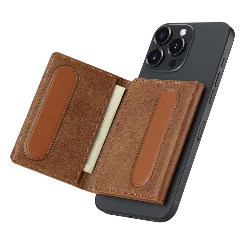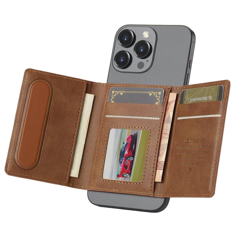LC.IMEEKE Porte-cartes magnétique avec fonction Kickstand - Marron