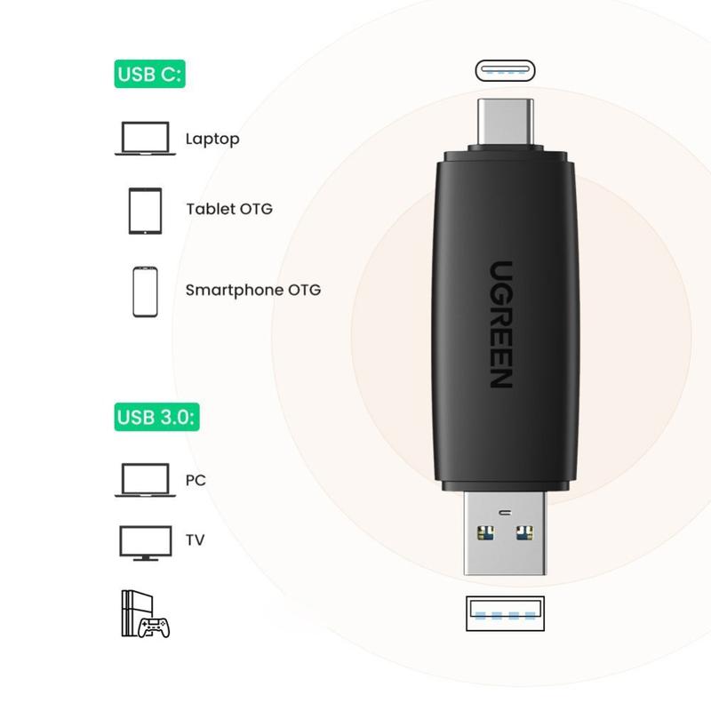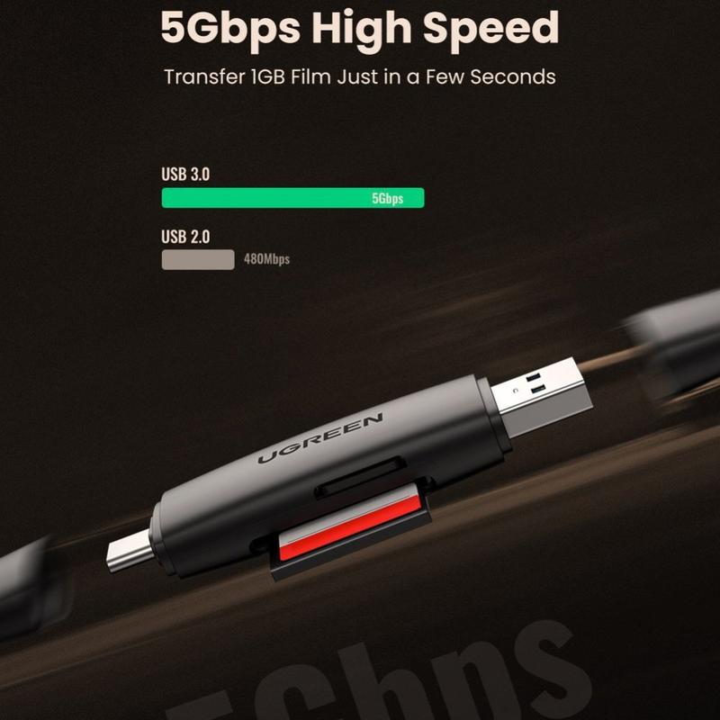 • Lecteur de carte microSD SD USB-C et USB-A Ugreen 5 Gbps - Adaptateur OTG 2 en 1 avec deux emplacements