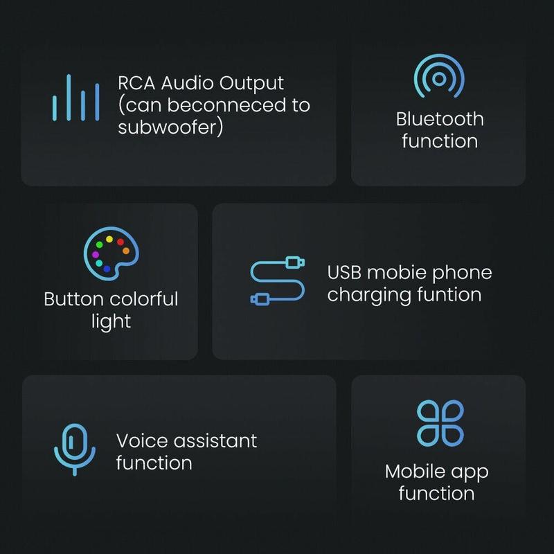 - Qualité sonore améliorée : Connectez un caisson de basse via la sortie RCA pour profiter de basses profondes et d'une clarté sonore supérieure.