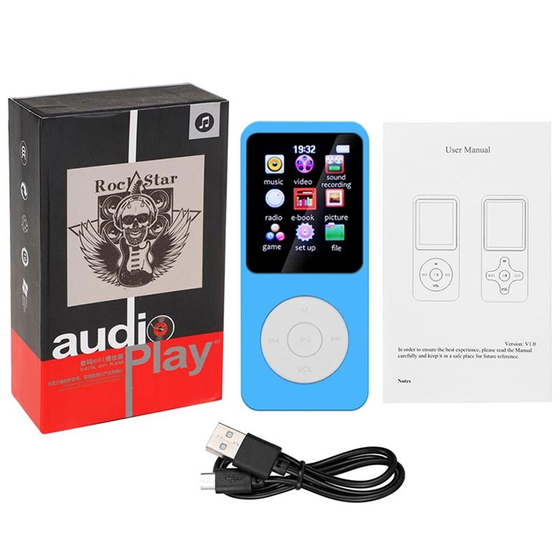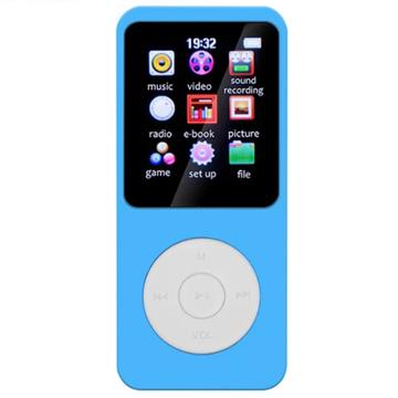 Lecteur MP4 portable T1 avec écran 1.8" et carte TF 64 Go - Bleu clair