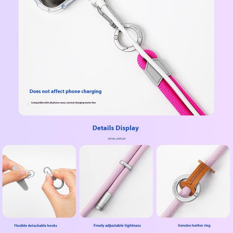 • Leeu Design Stylish Universal Crossbody Phone Lanyard - Courroie de cou réglable en polyester de 6 mm avec languette d'attache