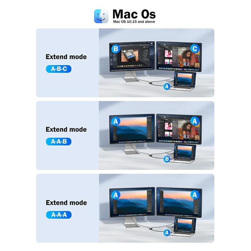 Cet adaptateur est doté de deux sorties HDMI, prenant en charge les modes d'affichage étendu et en miroir. Un port prend en charge la résolution 4K à 30 Hz (via le pilote TUTULINK), tandis que le second délivre du 1080P Full HD, permettant des combinaisons d'affichage flexibles pour le travail, les présentations ou le divertissement.