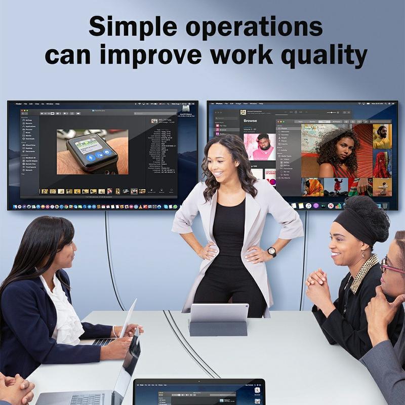 Compatible avec les appareils dotés de ports USB-A ou USB-C, l'adaptateur fonctionne en toute transparence avec les ordinateurs portables, les ordinateurs de bureau et les tablettes compatibles. Il se connecte facilement aux moniteurs, téléviseurs et projecteurs, ce qui le rend adapté aux bureaux, aux salles de classe et aux installations domestiques.