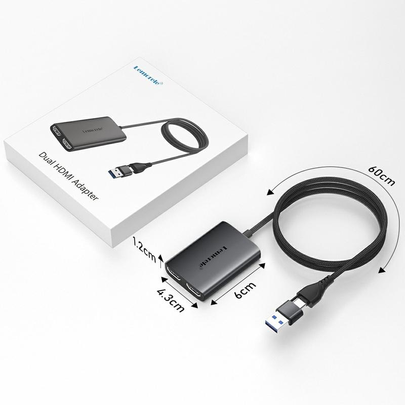 L'adaptateur Lemorele HD10 USB/USB-C vers double HDMI est conçu pour étendre ou refléter l'affichage de votre ordinateur portable ou de votre bureau sur deux écrans externes. En permettant des configurations à double moniteur, il améliore considérablement la productivité, le multitâche et l'efficacité du flux de travail pour une utilisation professionnelle et quotidienne.