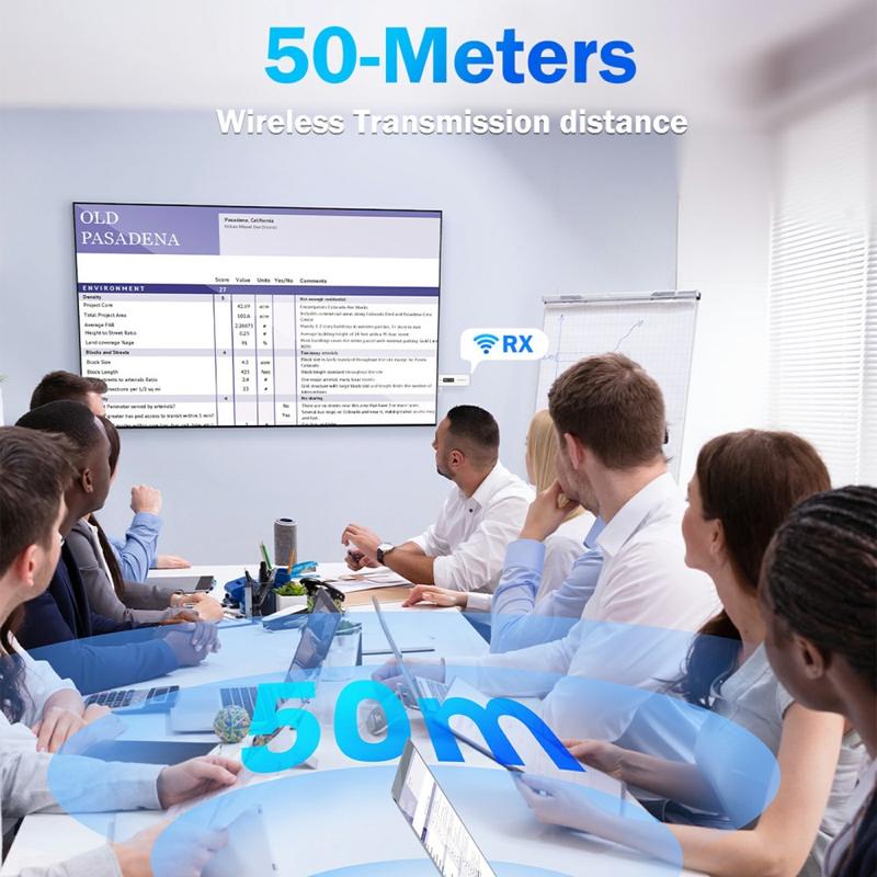 Le système prend en charge la transmission vidéo jusqu'à 1080P, garantissant une qualité d'image nette et des performances fiables pour les écrans, les projecteurs et les moniteurs. Il est idéal pour les présentations professionnelles, la lecture vidéo et la mise en miroir d'écran.