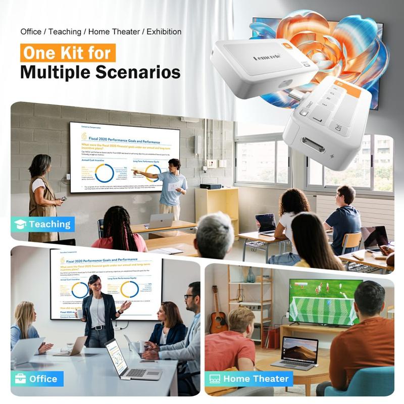 Le Lemorele P400 offre des performances sans fil fiables, une configuration sans effort et une qualité vidéo de niveau professionnel. Il élimine l'encombrement des câbles, réduit le temps d'installation et offre un mirroring d'écran Full HD stable, ce qui en fait un choix idéal pour les entreprises, les établissements d'enseignement et les particuliers.