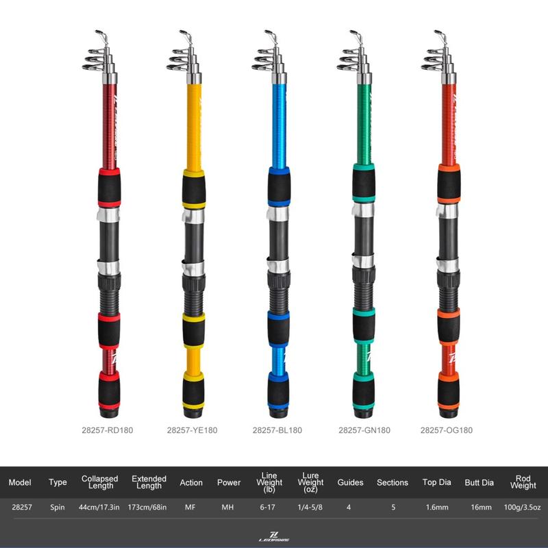 - Une canne de 1.73m offre un levier de lancer d'environ 5 m avec des leurres légers, ce qui est parfait pour les berges étroites ou la pêche en kayak.