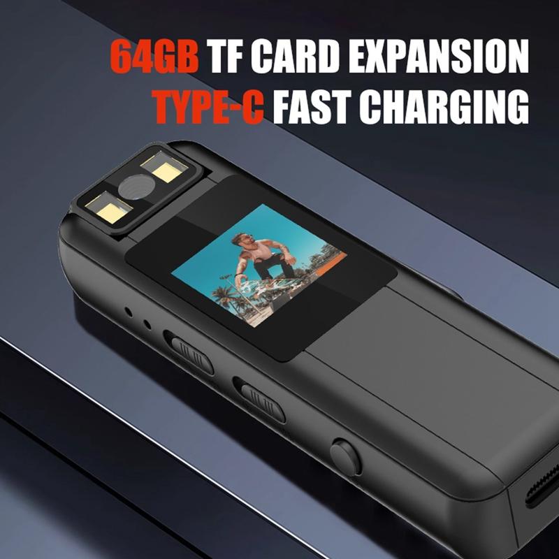 LK2315 Caméra DV HD pour le sport - Mini Bodycam 1080P avec objectif pivotant à 180°, vision nocturne, carte 32 Go et lecteur