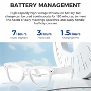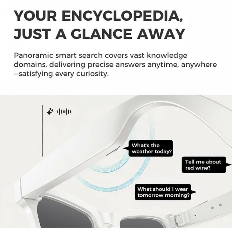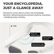 Les fonctions alimentées par l'IA, notamment la reconnaissance d'objets, les commandes vocales, l'interaction avec le dialogue et la traduction en temps réel, améliorent la commodité et permettent une communication transparente entre les langues. Les deux haut-parleurs avec amplificateurs indépendants offrent un son riche et clair pour la lecture de musique et les appels, tandis que les microphones à réduction de bruit garantissent une qualité vocale irréprochable.