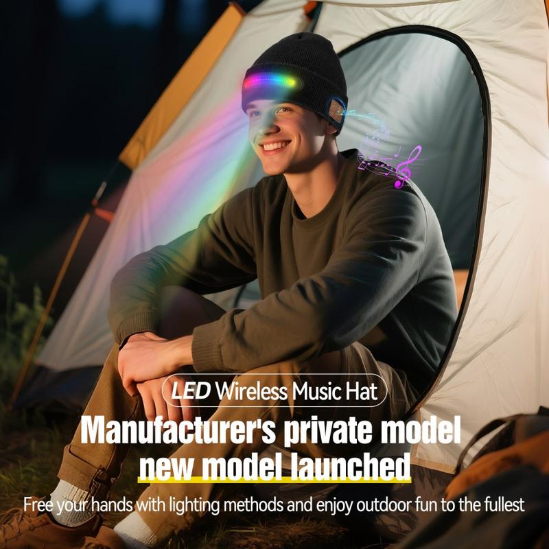 • M1-BTD4 Bonnet LED avec Bluetooth 5.4 et haut-parleurs stéréo - Bonnet musical chaud avec lumières colorées pour la course de nuit et les sports de plein air