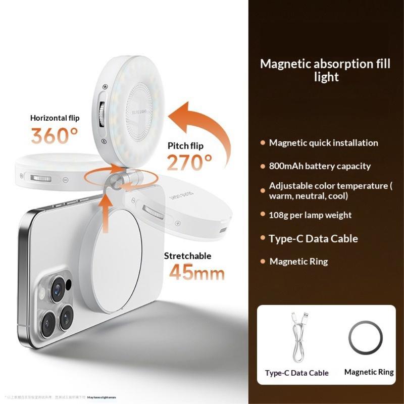 La lampe d'appoint à LED de poche magnétique M28 est un outil d'éclairage compact et portable conçu pour les créateurs, les photographes et tous ceux qui souhaitent bénéficier d'un éclairage parfait en déplacement. Son système LED intégré prend en charge trois températures de couleur réglables, ce qui vous permet d'ajuster l'éclairage pour obtenir des tons chauds, neutres ou froids en fonction de la scène. Le miroir haute définition intégré permet de prévisualiser votre look ou votre angle de prise de vue en temps réel, tandis que l'attache magnétique permet un montage sans effort sur les smartphones et autres surfaces métalliques. Avec son poids léger de 108 g et sa batterie rechargeable, cette lampe d'appoint est idéale pour les selfies, la diffusion en direct, les prises de vue en extérieur et la création de contenu de voyage.