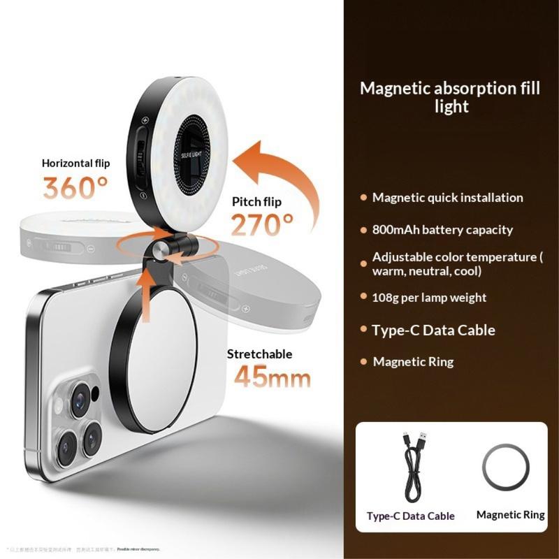 La lampe d'appoint à LED de poche magnétique M28 est un outil d'éclairage compact et portable conçu pour les créateurs, les photographes et tous ceux qui souhaitent bénéficier d'un éclairage parfait en déplacement. Son système LED intégré prend en charge trois températures de couleur réglables, ce qui vous permet d'ajuster l'éclairage pour obtenir des tons chauds, neutres ou froids en fonction de la scène. Le miroir haute définition intégré permet de prévisualiser votre look ou votre angle de prise de vue en temps réel, tandis que l'attache magnétique permet un montage sans effort sur les smartphones et autres surfaces métalliques. Avec son poids léger de 108 g et sa batterie rechargeable, cette lampe d'appoint est idéale pour les selfies, la diffusion en direct, les prises de vue en extérieur et la création de contenu de voyage.