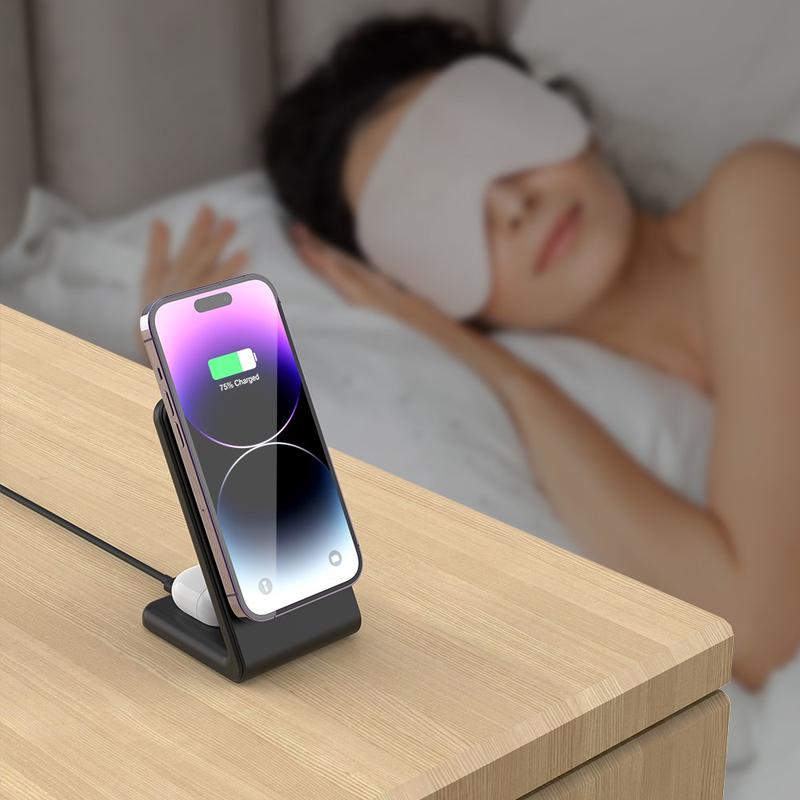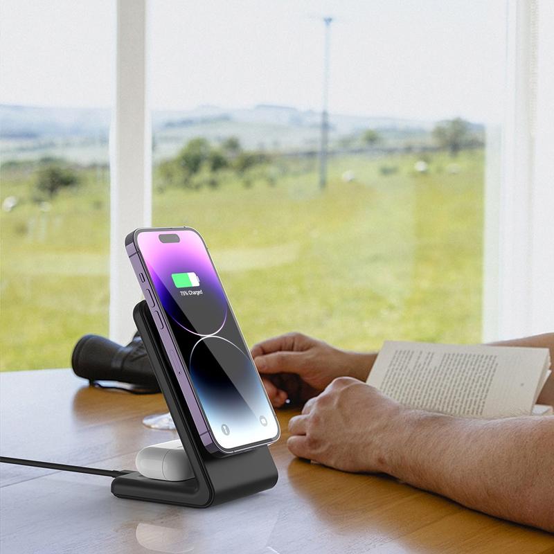 Simplifiez votre routine de recharge avec le chargeur magnétique sans fil M2A 2-en-1, un accessoire de bureau élégant et puissant conçu pour maintenir votre iPhone et vos AirPods sous tension en même temps. Avec son alignement magnétique précis, sa conception à vision verticale et ses normes de sécurité certifiées, c'est le compagnon idéal au quotidien, à la maison, au bureau ou au chevet.