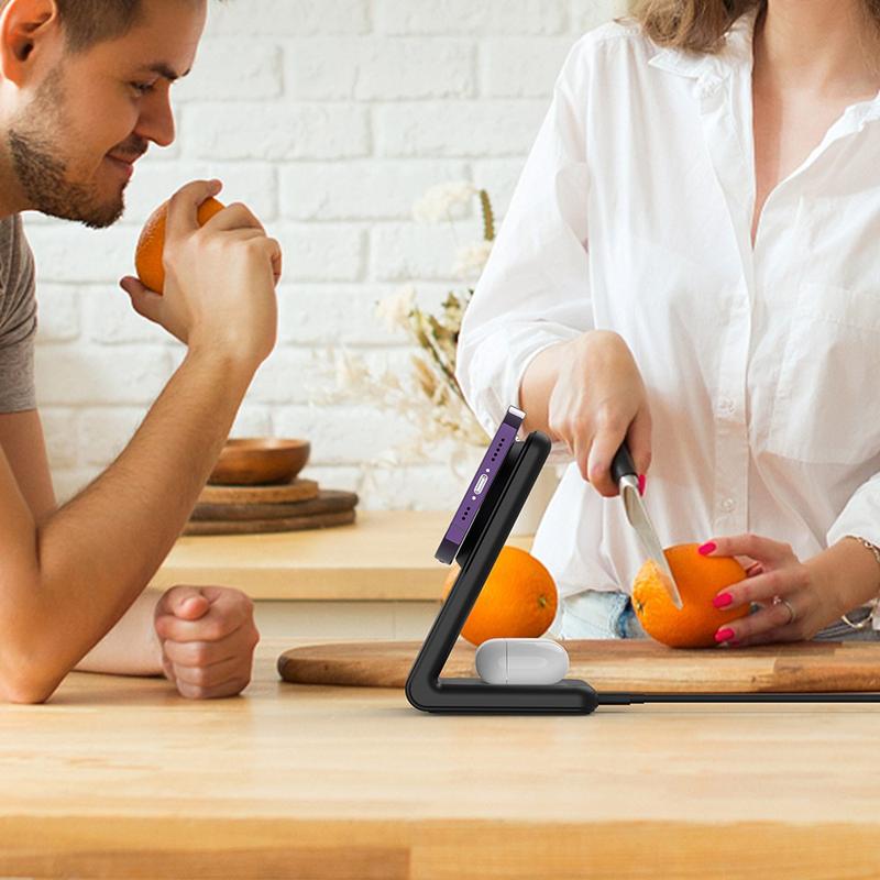 Utilisez votre téléphone en mains libres pendant qu'il se recharge - idéal pour les appels vidéo, regarder du contenu ou lire des notifications. La conception verticale ergonomique permet à votre écran d'être visible et à votre espace de travail d'être bien rangé.