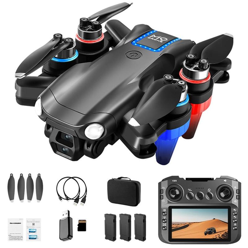 M9 Drone FPV à moteur sans balais - Quadcopter pliable avec deux caméras HD, flux optique, évitement des obstacles, contrôleur à l'écran et 3 batteries