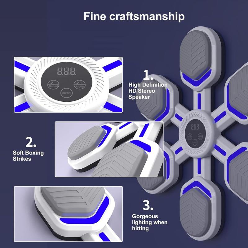 La conception rythmée par la musique contribue à rendre les séances d'entraînement plus dynamiques et divertissantes, transformant l'entraînement à la frappe en une séance d'exercice basée sur le rythme. Cela peut aider à rendre l'entraînement plus agréable tout en favorisant la vitesse, la réactivité et le contrôle des mouvements. La cible murale électronique est conçue pour encourager un entraînement à la frappe plus ciblé, dans un format simple et accessible pour une utilisation régulière à domicile.