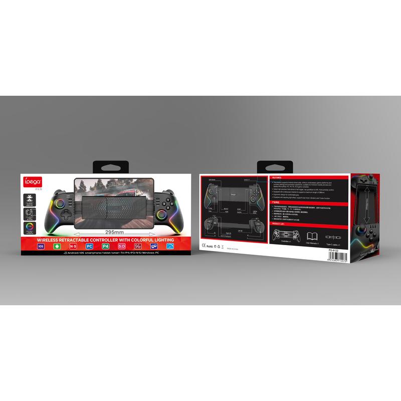 Améliorez votre expérience de jeu sur les plateformes mobiles et consoles grâce à la manette sans fil RGB extensible iPega 9122. Conçue pour offrir un confort optimal et une réactivité rapide, elle dispose d'un design télescopique (extensible) qui maintient votre téléphone en toute sécurité pour jouer à la main, tandis que le rétroéclairage RGB réglable lui confère un look moderne. Il se connecte directement aux appareils Android pour un démarrage rapide sans configuration compliquée, et il prend également en charge iOS (MFi), PS3, PS4, Nintendo Switch et PC pour une solution de contrôleur tout-en-un polyvalente.