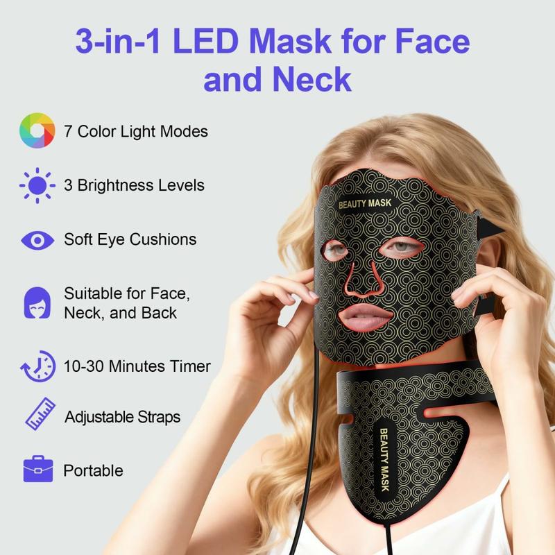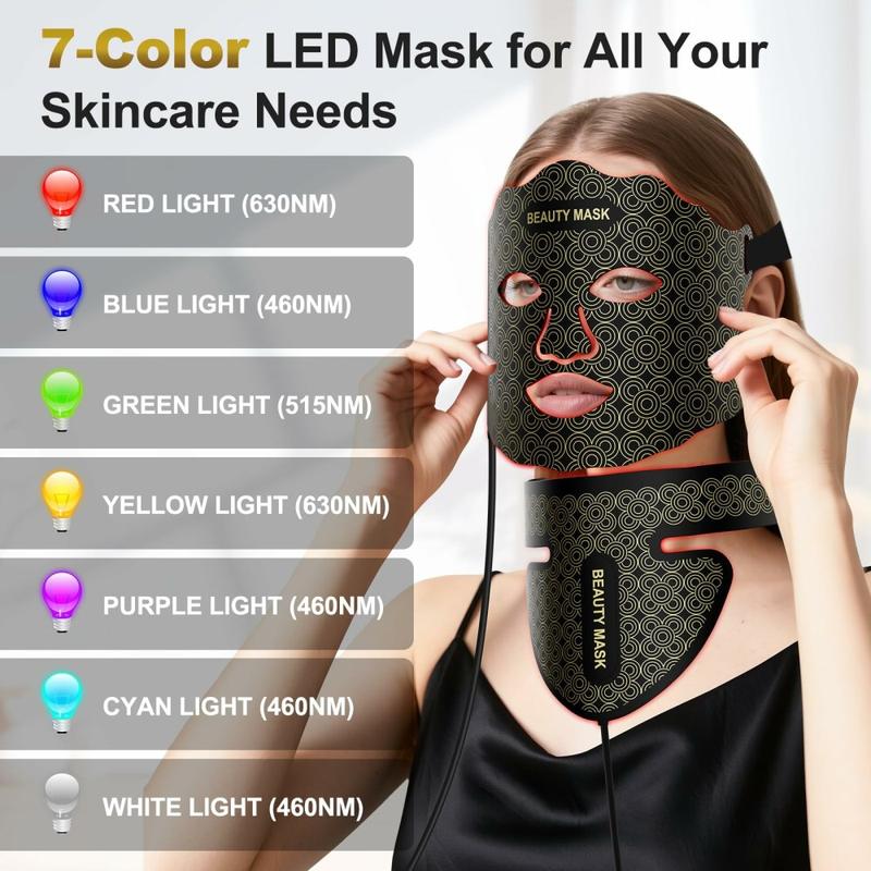 Masque de luminothérapie LED 7 couleurs pour le visage et le cou - Noir