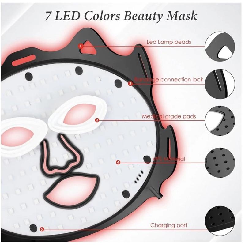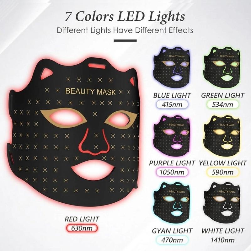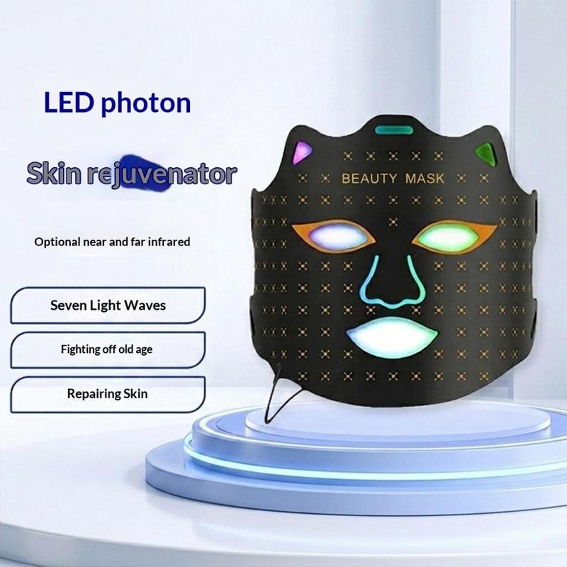 • SP-1103A Masque facial de luminothérapie LED 7 couleurs - Masque de soin de la peau sans fil en silicone à photons avec contrôleur numérique
