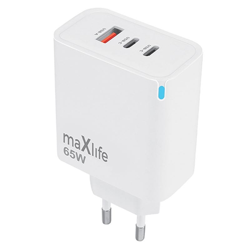 Maxlife MXTC-09-65ACC Chargeur GaN - 65W, 2x USB-C, USB-A - Blanc