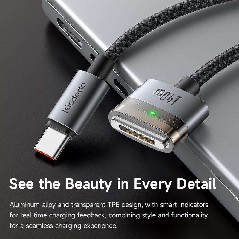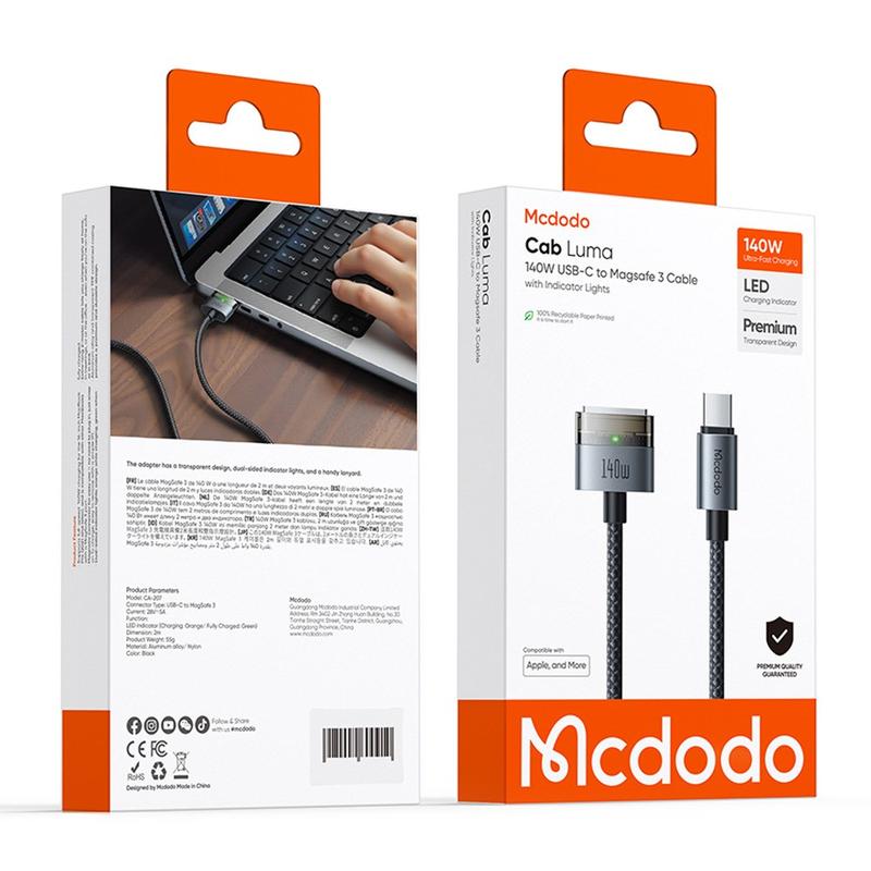 Mcdodo CA-207 Câble de charge 140W USB-C vers MagSafe 3 - 2m - Tresse nylon avec voyant lumineux.