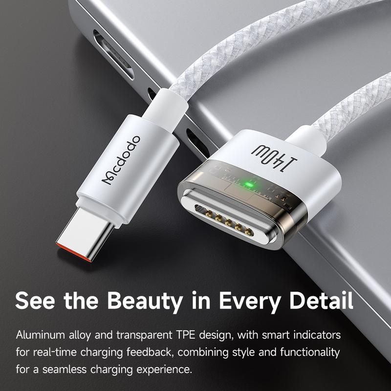 Mcdodo CA-207 Câble de charge 140W USB-C vers MagSafe 3 - 2m - Tresse nylon avec voyant lumineux.