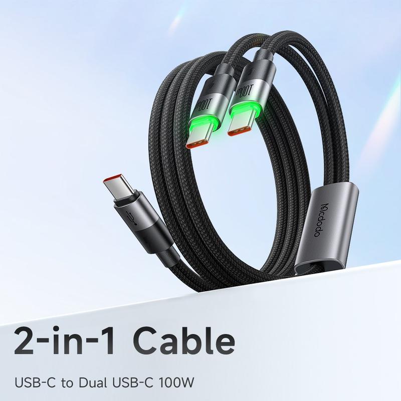 Mcdodo CA-6740 Câble USB-C 2-en-1 avec charge rapide 100W, lumière LED - 1.5m