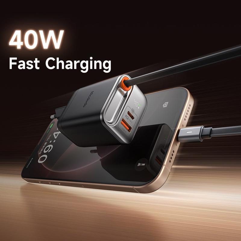 • Mcdodo CH-4281 Chargeur rapide 40W GaN avec câble USB-C rétractable de 65cm et ports USB-C, USB-A