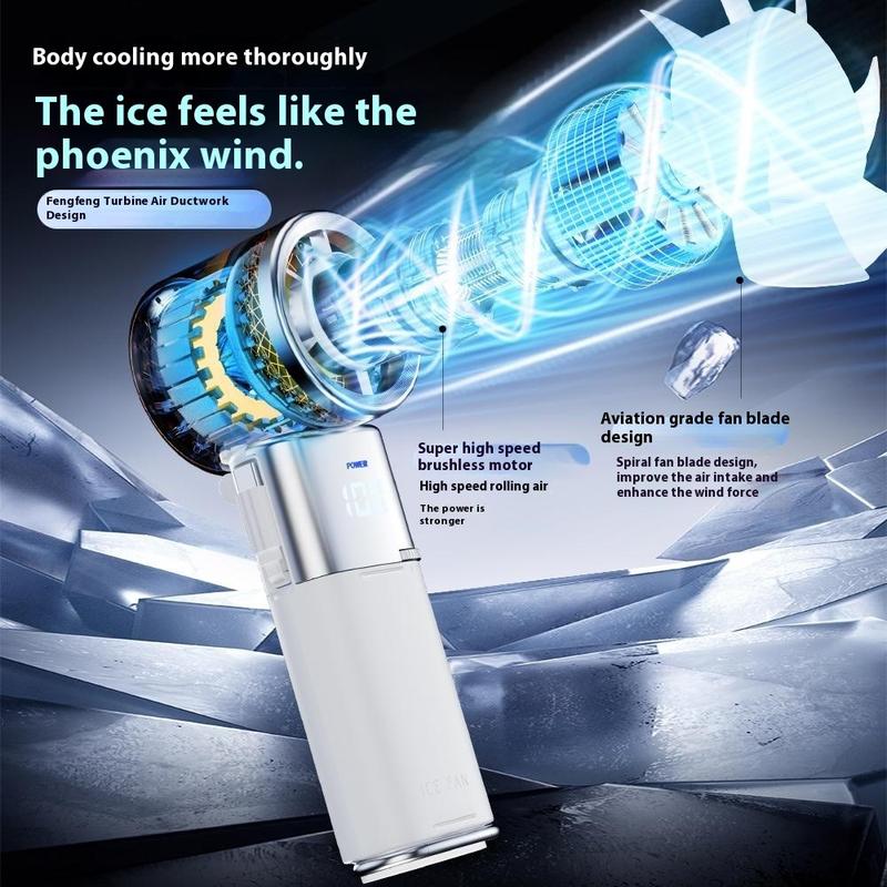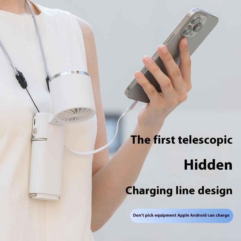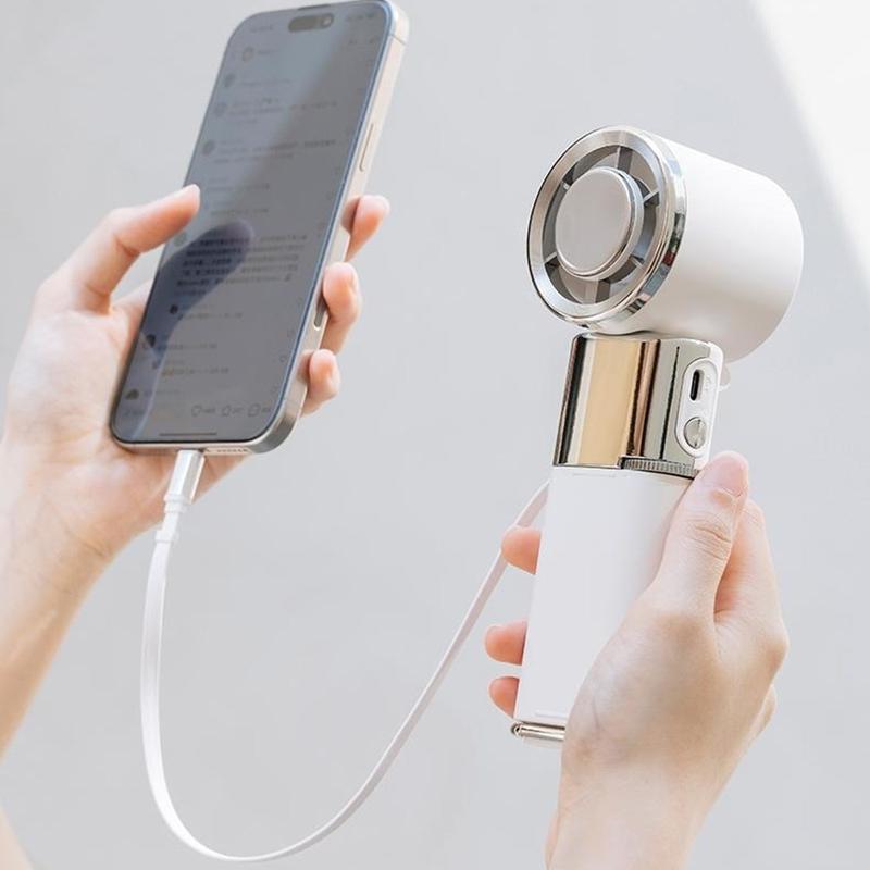MF119 Ventilateur de poche 100 vitesses avec câble USB-C rétractable et refroidissement des semi-conducteurs.