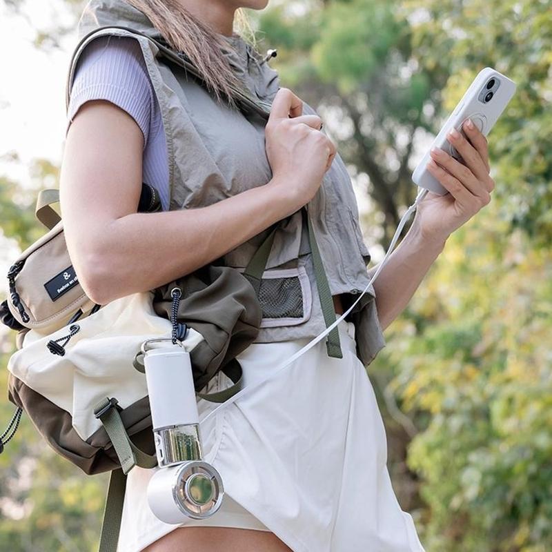 - Attachez le cordon à la sangle d'un sac à dos et rafraîchissez-vous lors des promenades dans les festivals sans câbles de rechange.