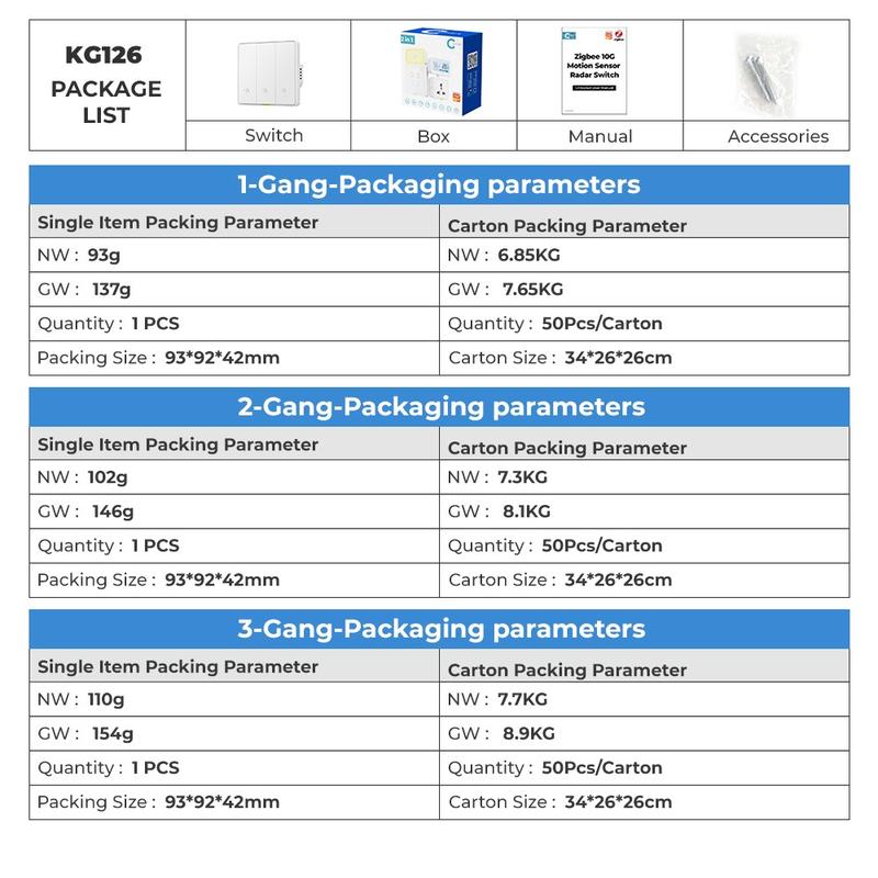L'interrupteur intelligent Zigbee Radar MG-KG126 associe la technologie de détection de mouvement à la commande à distance par application pour simplifier les besoins d'éclairage quotidiens. Son intégration Zigbee transparente, associée à la flexibilité de la programmation Tuya, offre une expérience fluide et conviviale. Idéal pour ceux qui recherchent un équilibre entre confort, efficacité énergétique et compatibilité avec la maison intelligente, cet interrupteur rehausse tout espace dans lequel il est installé.